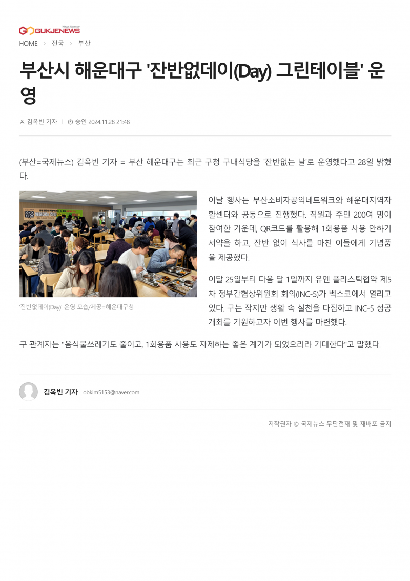 부산시 해운대구 '잔반없데이(Day) 그린테이블' 운영 페이지 정보 작성자 최고관리자 작성일26-02-19 14:46 조회131회 관련링크 https://www.gukjenews.com/news/articleView.html?idxno=3147356 80회 연결 이전글 다음글 목록 답변 본문 이전글 다음글 목록 답변